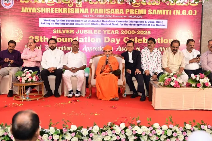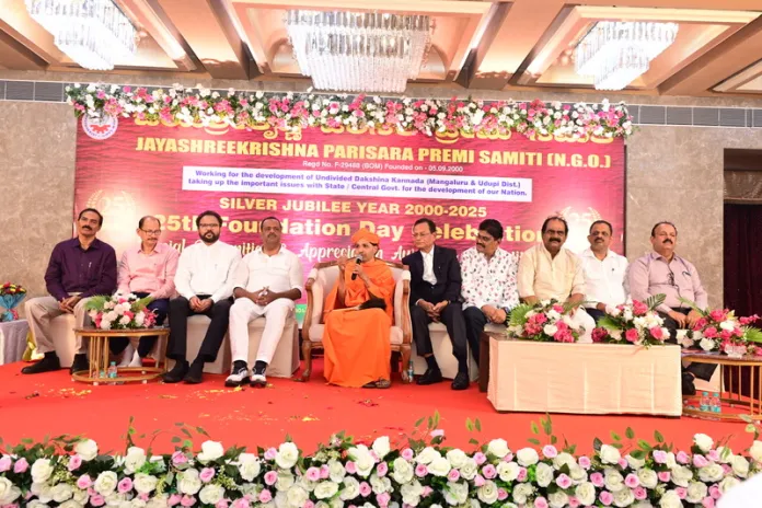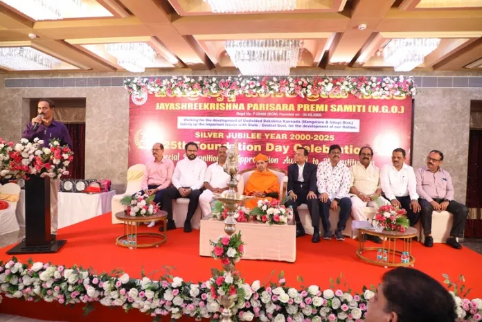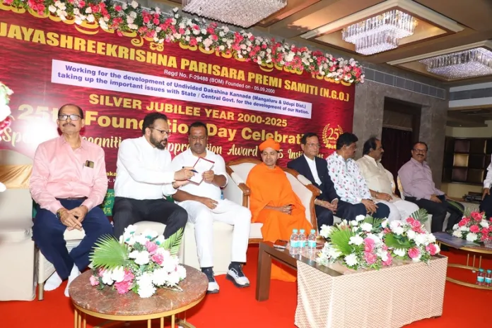Jayashreekrishna Parisara Premi Samiti (R.) commemorated its 25th Foundation Day on September 5th at Hotel Peninsula Grand, Sakinaka, with a grand celebration attended by dignitaries and representatives from various community organizations. The event, presided over by Nityananda D. Kotian and graced by the presence of Founder Thonse Jayakrishna A. Shetty and Karnataka Legislative Assembly Speaker U.T. Khader, recognized the Samiti’s significant contributions to coastal development and honored 25 community organizations for their service.
