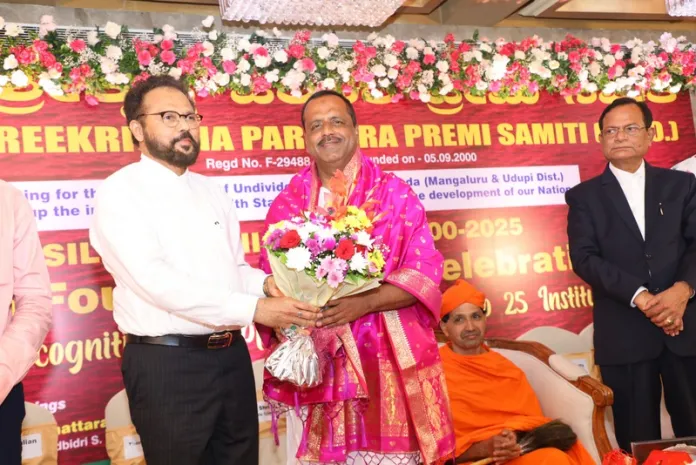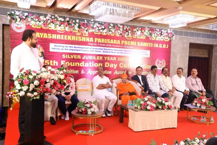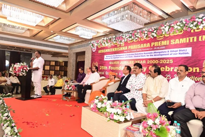 In his keynote address, Founder Jayakrishna A. Shetty expressed gratitude for the support received from leaders and politicians over the past 25 years. He highlighted the implementation of several development projects in the districts through the government, acknowledging the significant contribution of George Fernandes. He voiced confidence that the Samiti’s future plans would reach even greater heights with the guidance of experienced presidents. Shetty also emphasized the importance of communal harmony and urged the government to act quickly on the 100-year development plan presented to Speaker U.T. Khader.