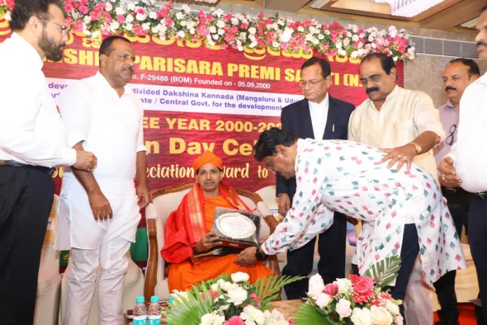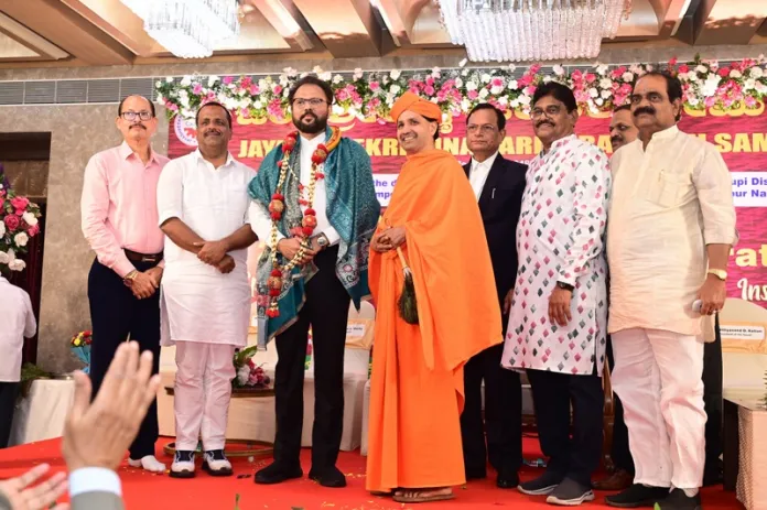 His Holiness Dr. Charukeerthi Bhattaraka Panditacharyavarya Swamiji of Sri Digambara Jain Math, Moodbidri (D.K.), blessed the gathering, highlighting Tulunadu as a “mini-India.” He commended the Samiti for honoring 25 community organizations and praised Thonse Jayakrishna A. Shetty for his efforts in reforming politicians and promoting religious harmony. He also noted the significance of the event coinciding with Teachers’ Day, acknowledging Shetty’s father’s profession as a teacher.